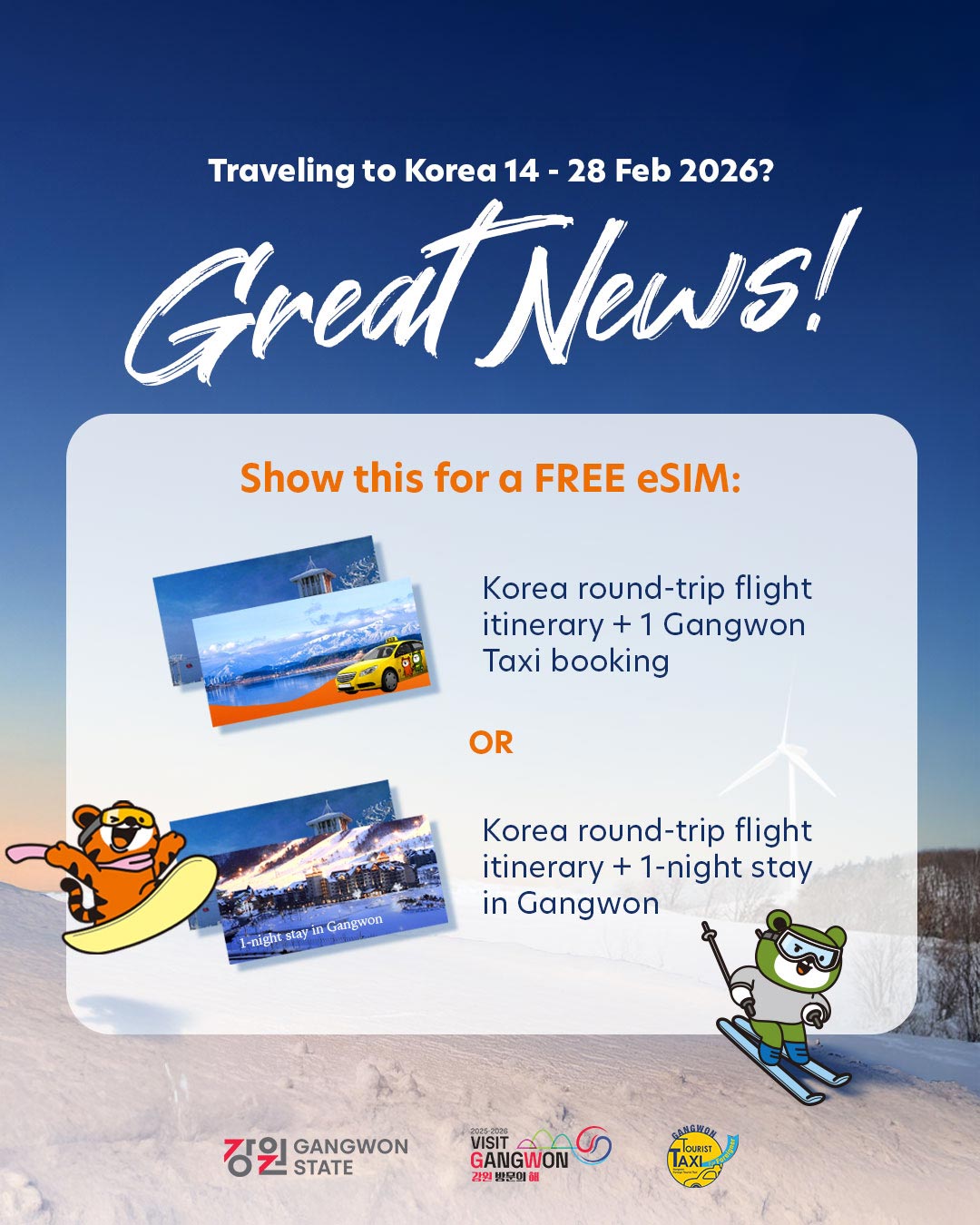 Traveling to Korea 14–28 Feb 2026? Grab a FREE travel eSIM by showing: