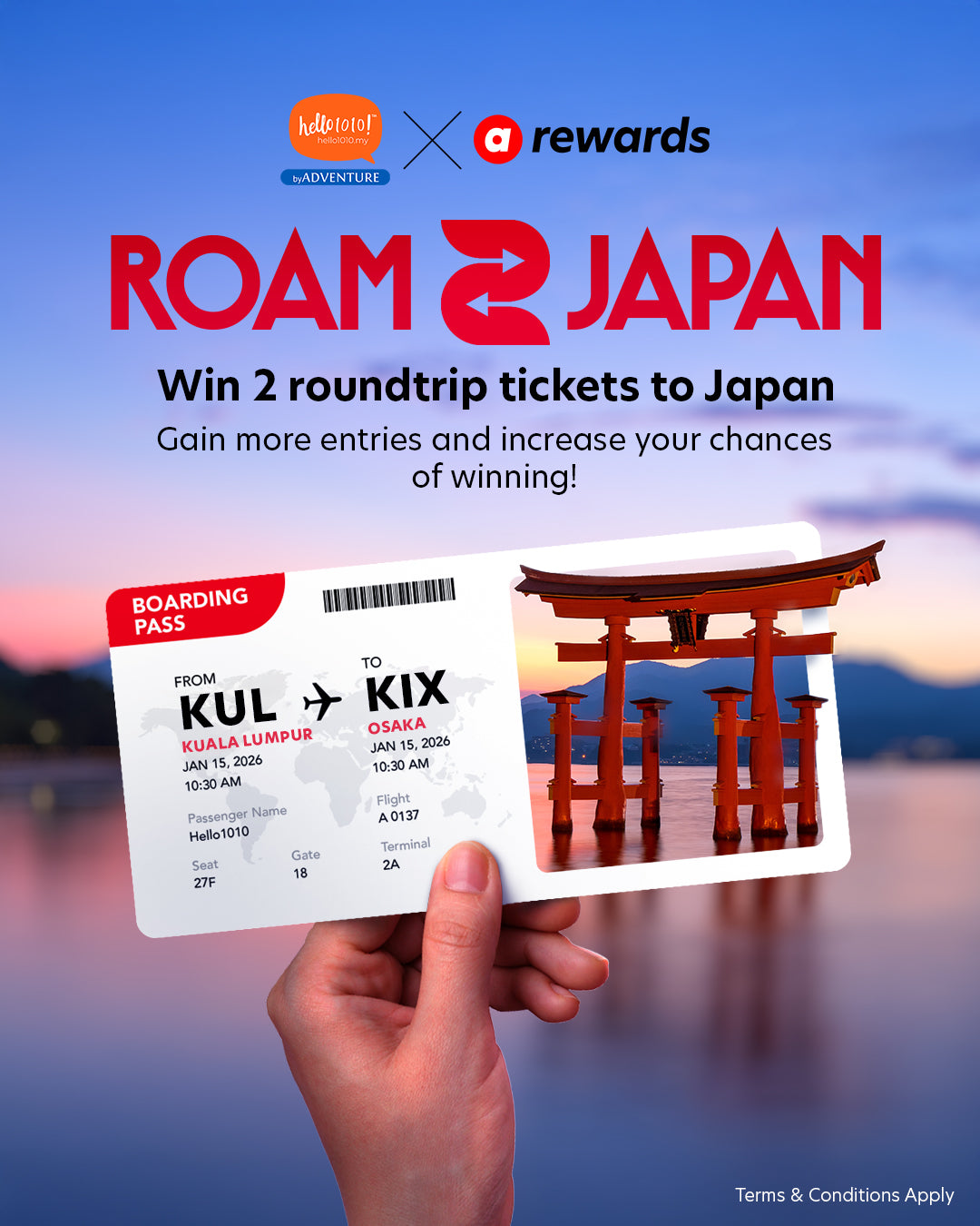 • 5x entries with purchase of eSIM Japan Infinite Data at hello1010.my